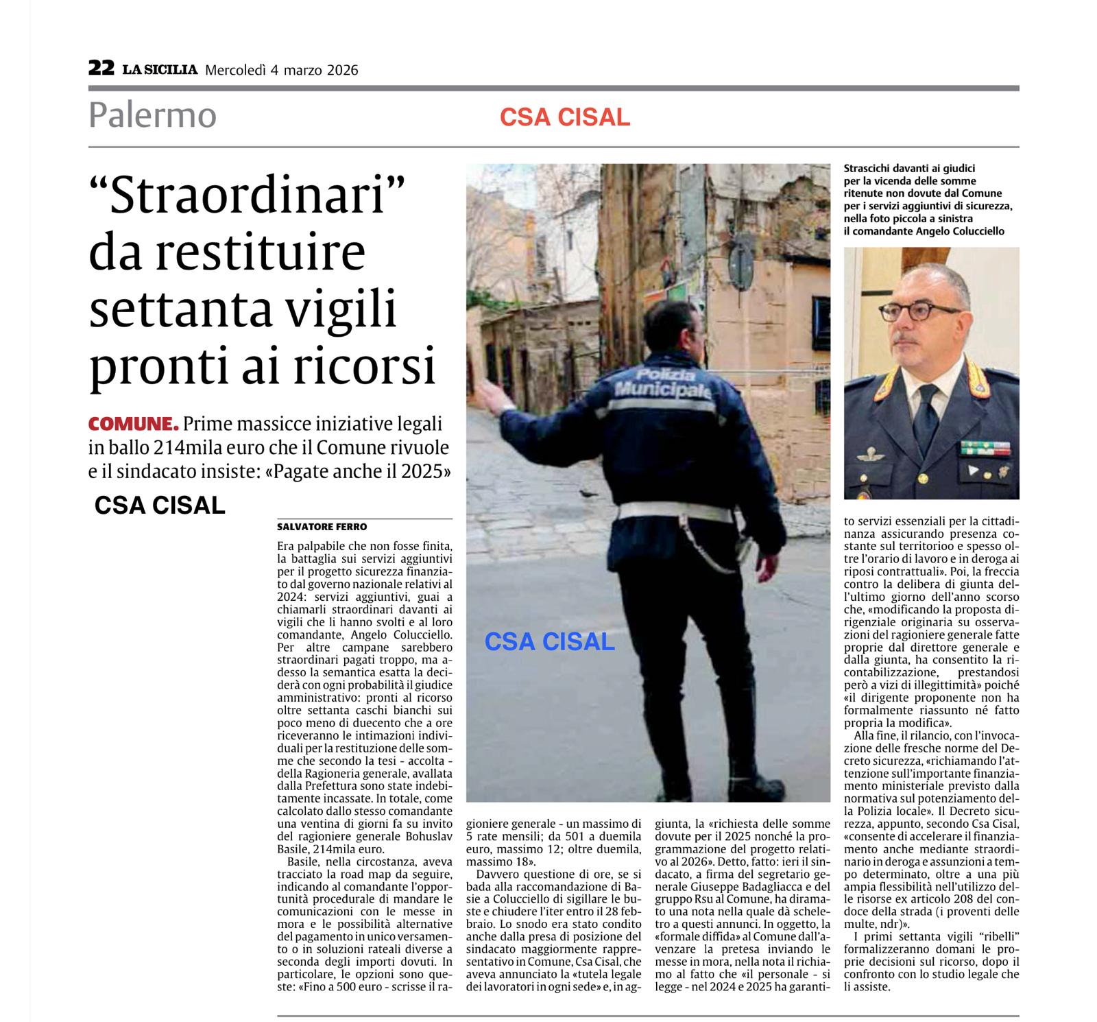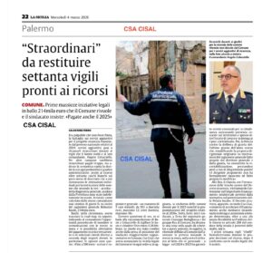 Navigazione articoli Articolo La Repubblica di Palermo del 03/03/2026 CSA CISAL, comunicazione assemblea sindacale per tutto il personale della Polizia Municipale g. 12.03.2026