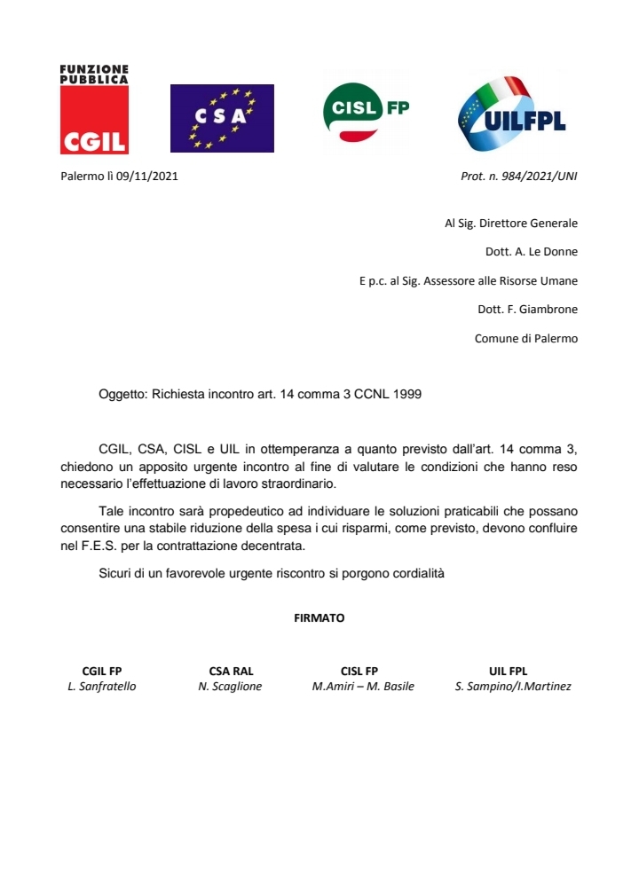 Comune di Palermo Navigazione articoli Seus, Csa-Cisal: “Ritardi sulla nomina del Cda, società allo sbando” Lsu e Asu, Cisal: “Pensioni da fame, pronta una raccolta firme in tutta Italia”