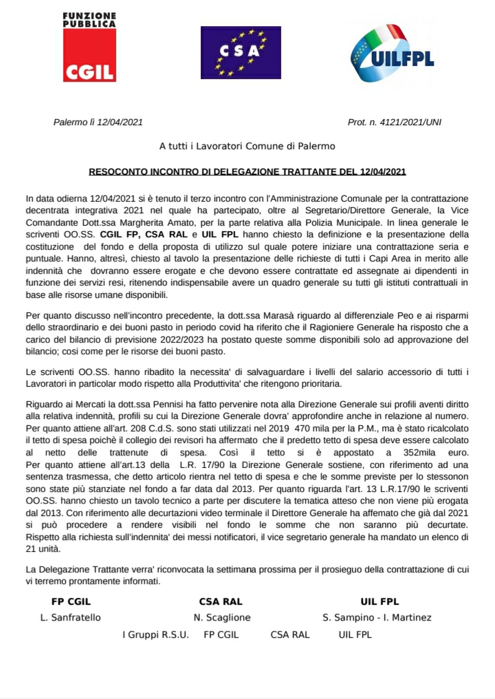COMUNE DI PALERMO Navigazione articoli CSA, Richiesta avvio immediato contrattazione decentrata 2021. ENCAL PATRONATO CISAL, Avvio Campagna Fiscale 2021 – Modello 730/2021 – Redditi 2020