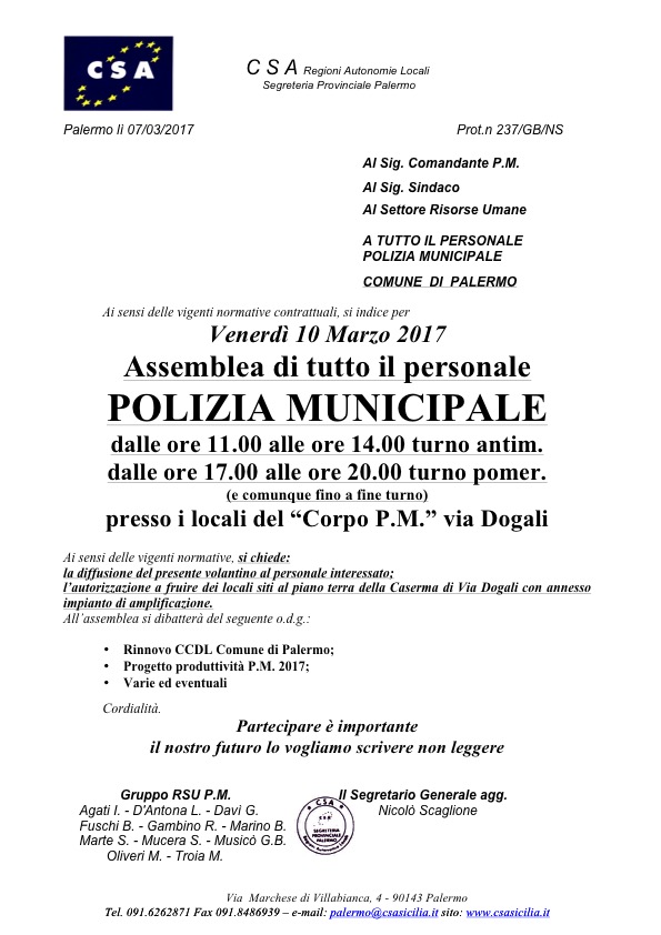 - Rinnovo CCDL Comune di Palermo;