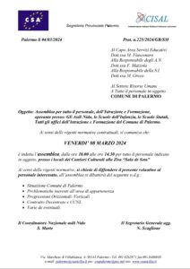 Navigazione articoli Rifiuti, Fiadel-Cisal: “Bene nomina di Schifani a commissario, ora si recuperi il tempo perduto CSA CISAL Comune di Palermo ERRATA CORRIGE: Assemblea per tutto il personale, dell’Istruzione e Formazione
