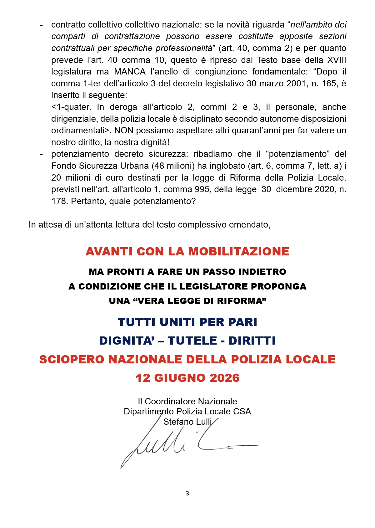 Comunicati CSA Dipartimento Polizia Locale Nazionale Polizia Locale Sciopero Sindacato Uncategorized