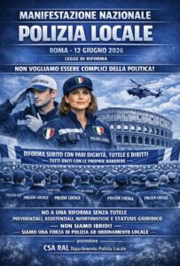 • COMUNICATO CSA RAL DIPARTIMENTO NAZIONALE POLIZIA LOCALE