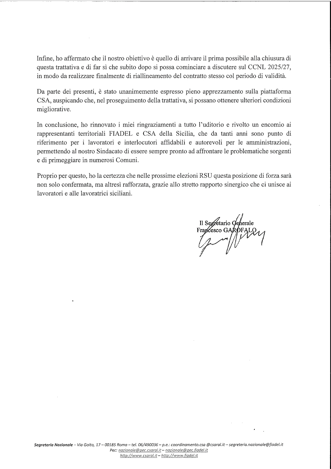 Navigazione articoli Contratto decentrato al comune di Palermo, Csa firma la pre-intesa: “Risultato per i lavoratori” Contratto decentrato al Comune di Palermo, CSA Cisal firma la pre-intesa: “Risultato per i lavoratori”