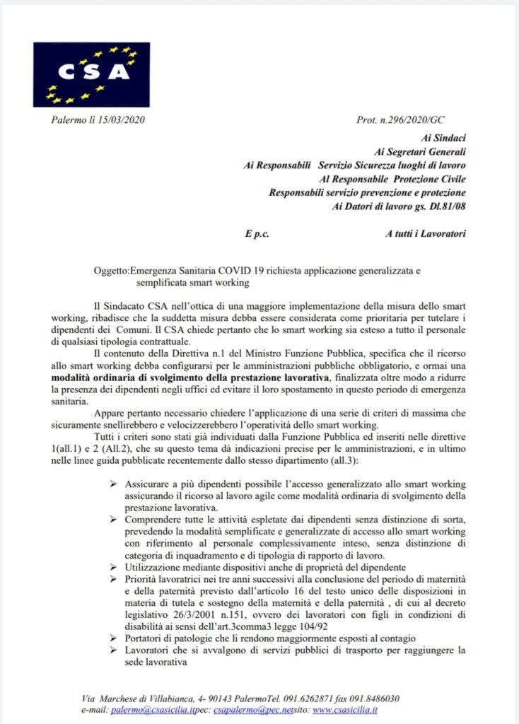 Navigazione articoli CSA CISAL, Richiesta riconoscimento dell’indennità di Ordine Pubblico ai lavoratori della Polizia Locale. A tutti gli Enti Locali della Regione Sicilia. CSA GRUPPI RLS/RSU, COVID 19, richiesta installazione distributori automatici di bevande e generi alimentari
