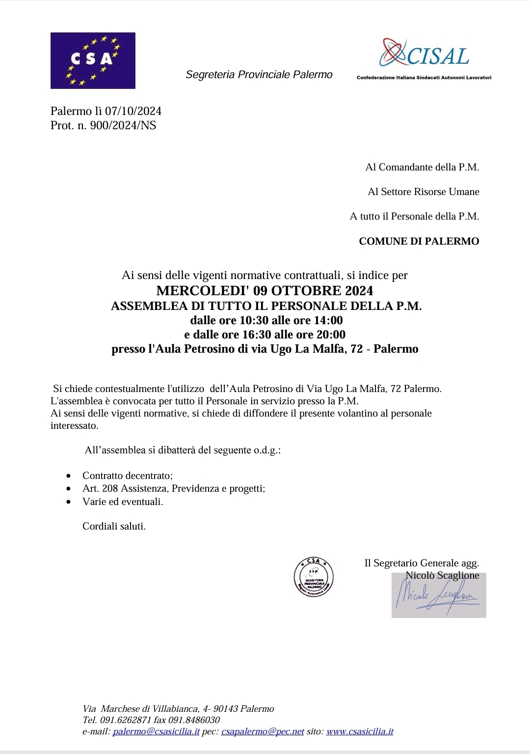 Navigazione articoli CSA Segr. Naz. COMUNICATO Tavolo di trattativa contratto FL – 30 settembre CSA, Rinvio assemblea POLIZIA MUNICIPALE e RICONVOCAZIONE