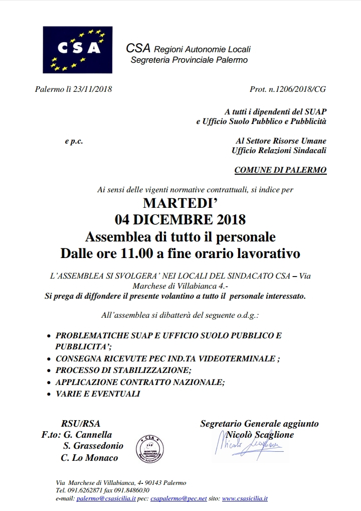 Navigazione articoli CSA, Problematiche Postazioni San Giovanni Apostolo – Richiesta rotazione apertura pomeridiana. Compensazione legale – DIFFIDA