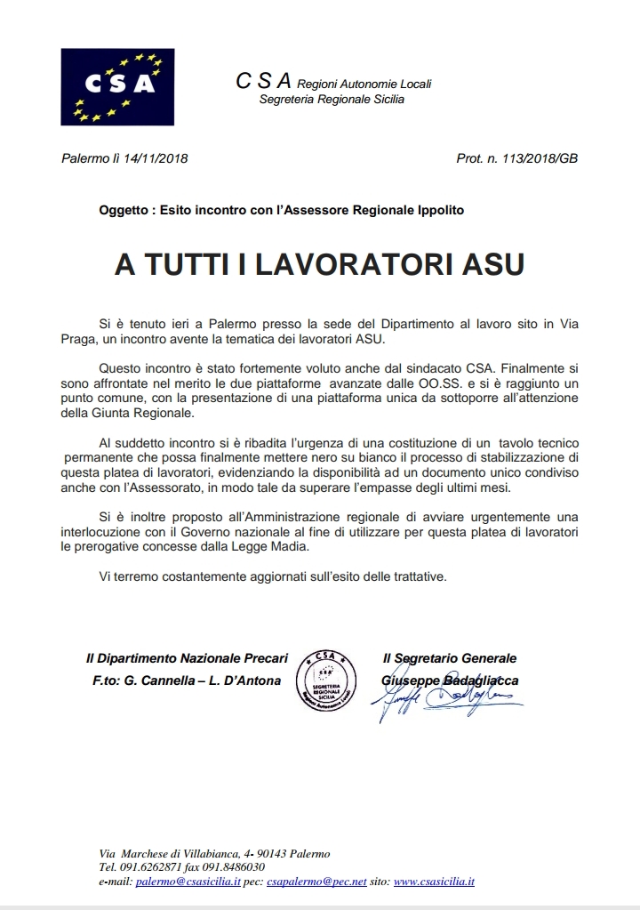 Navigazione articoli CSARAL-UILFPL-FPCGIL-DIREL: Vertenza personale Dirigente – richiesta incontro e proclamazione stato di agitazione. CSA, Comunicato Stampa Vertenza Stabilizzazione ASU