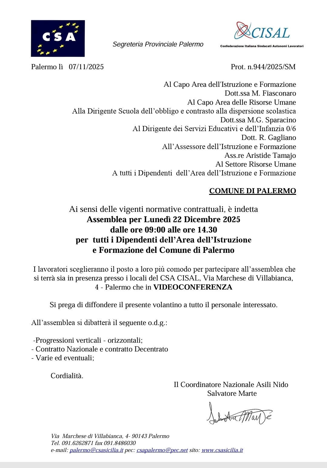 Navigazione articoli Segr. Naz. CSA SU ITALIA OGGI IL COMMENTO DI FRANCESCO GAROFALO SUL NUOVO CCNL Incentivi tecnici al comune di Palermo, Csa-Cisal: “Regolamento fermo, proclamato lo stato di agitazione”