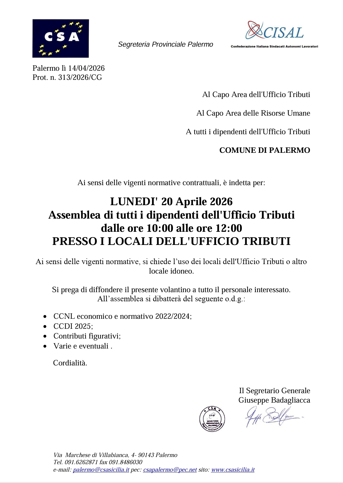 Navigazione articoli Buona Pasqua Regione siciliana, diffida del Siad-Csa-Cisal: “Si paghino subito gli arretrati ai dipendenti regionali”