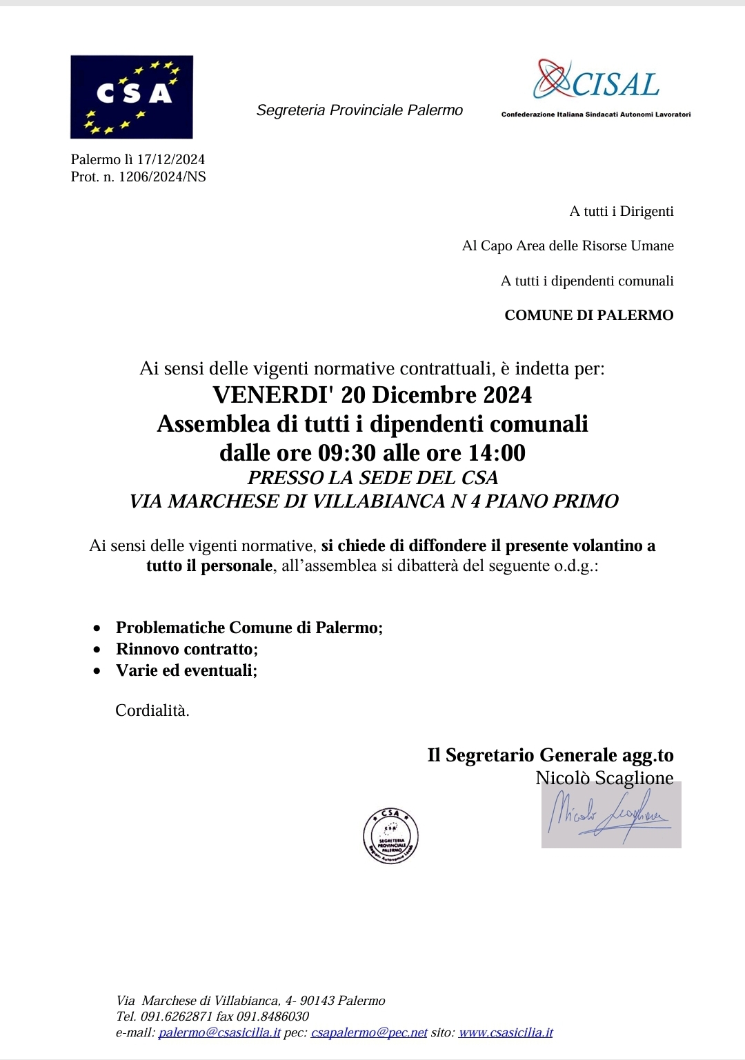Navigazione articoli RLS GRUPPO CSA, COMUNICAZIONE AI LAVORATORI DEL COMANDO DI POLIZIA MUNICIPALE Segr. Naz. CSA, comunicato resoconto riunione del tavolo di trattativa sul rinnovo del contratto F.L. del 17 dicembre