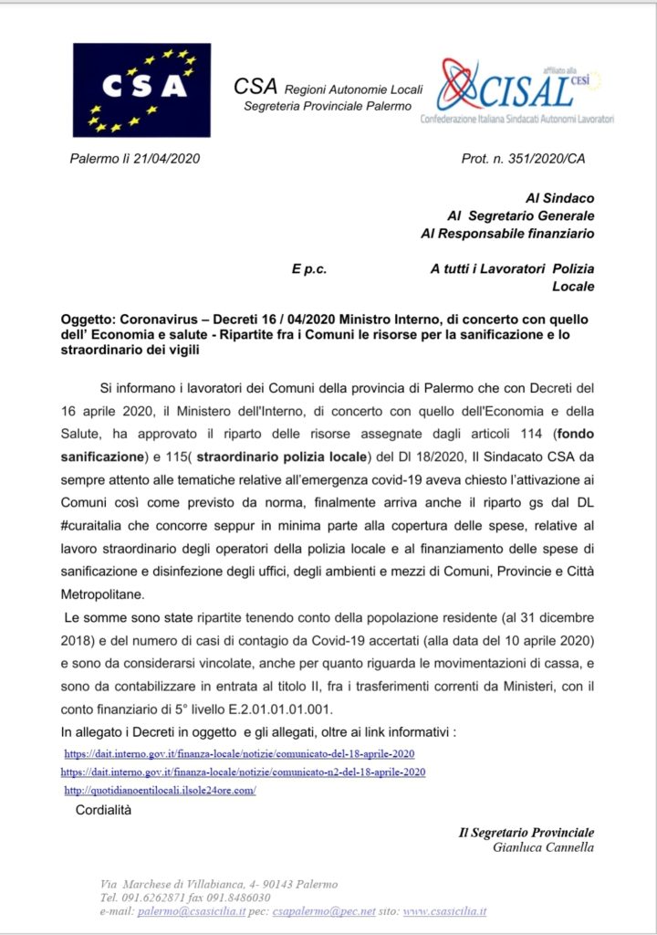 Navigazione articoli CSA RAL, Note Segreteria Nazionale alla Funzione Pubblica Istruzione al comune di Palermo, Csa-Cisal e Cgil: “Da Cisl sterile polemica, così si danneggiano bambini e famiglie”