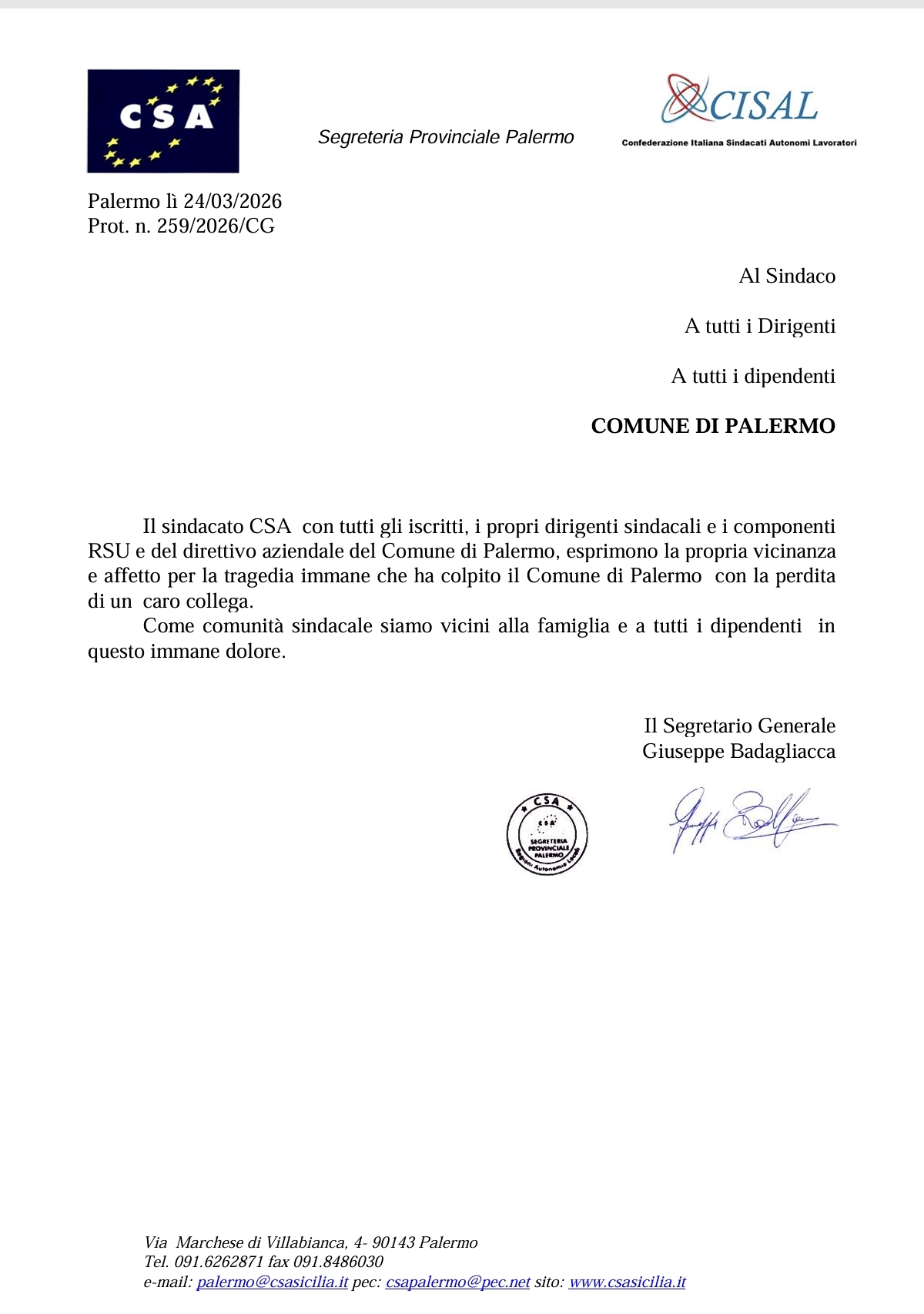 Navigazione articoli CISAL Calabria e CISAL Sicilia: “Il 28 marzo a Messina per il Ponte, per il lavoro, per il futuro del Sud” CSA CISAL, Ringraziamenti