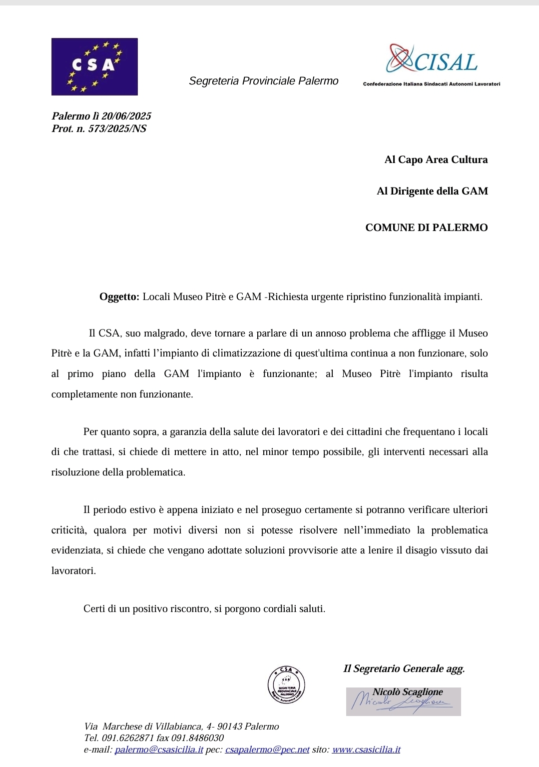 Navigazione articoli Part-time al comune di Palermo, Csa-Cisal: “Aumento a 34 ore per oltre 1300 dipendenti” Personale della Regione Siciliana, Siad-Csa-Cisal: “Bene le assunzioni ma siano adeguate al nuovo contratto e si investa nelle elevate professionalità”