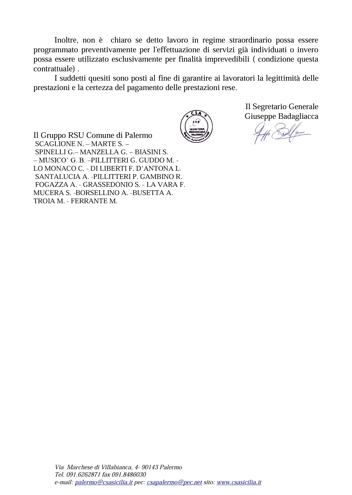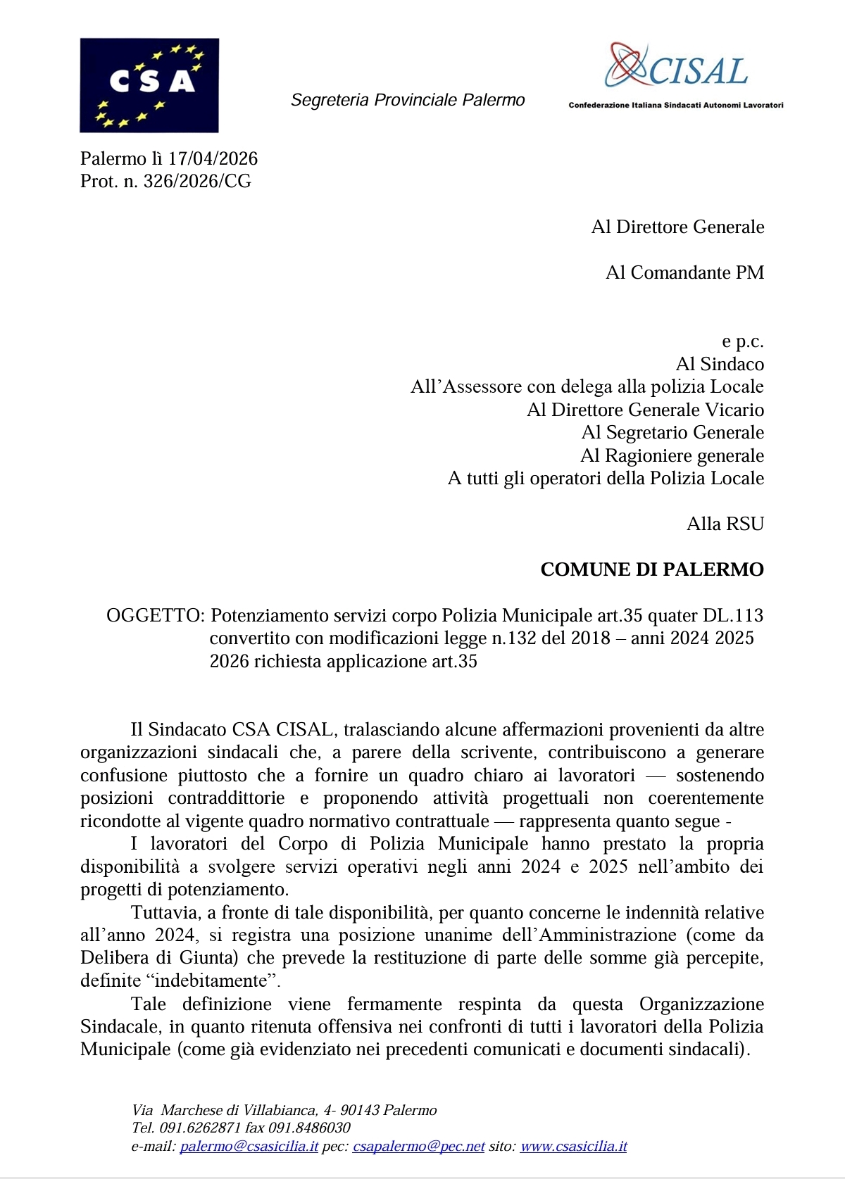 CSA R.A.L. CISAL Palermo Sicilia
