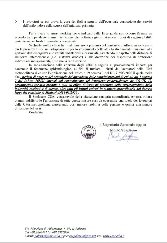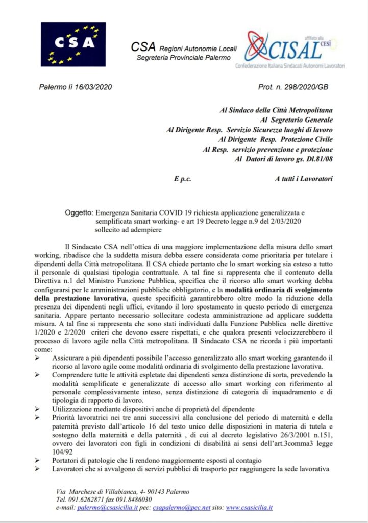 Navigazione articoli CSA CISAL, Emergenza covid-19 ASU – tutela lavoratori ASU – smart working Segr. Nazionale CSA RAL – FIADEL, nota su Coronavirus
