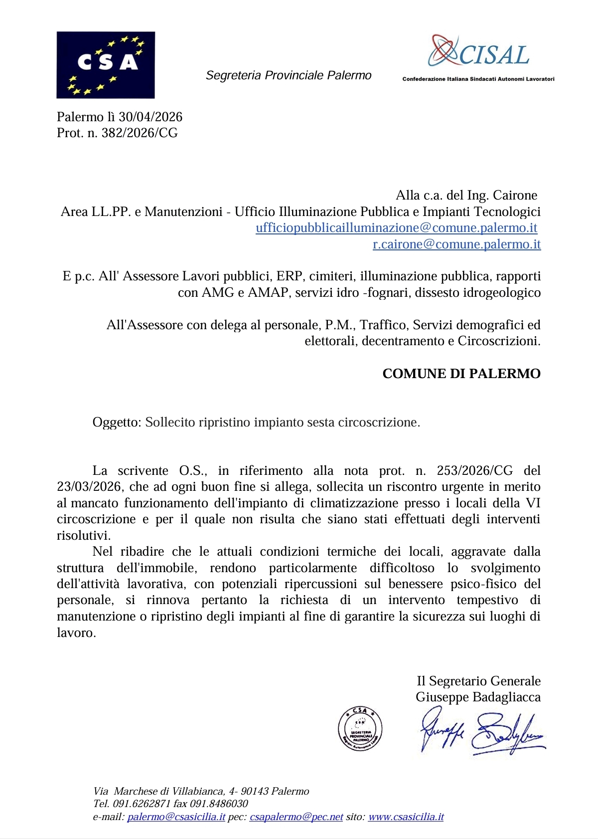 CSA R.A.L. CISAL Palermo Sicilia