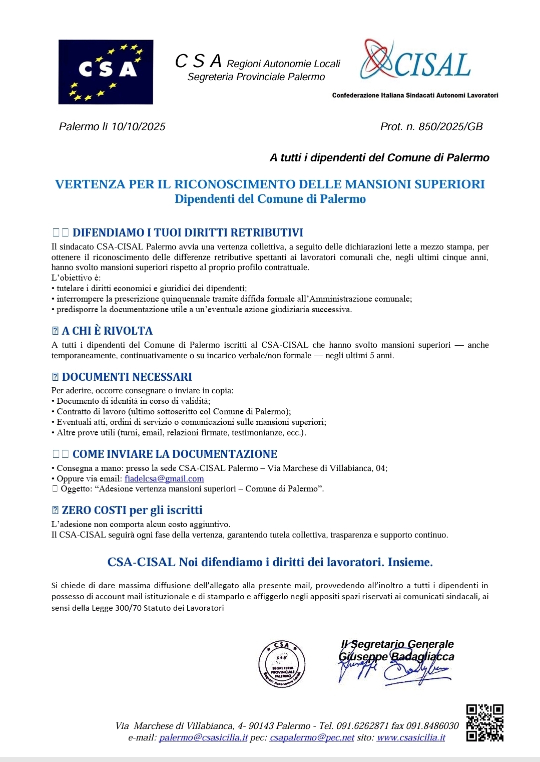 Navigazione articoli CCNL FL 2022-2024, 22/10/2025 ore 10:30 Convocazione ARAN per prosecuzione della trattativa per il rinnovo del contratto nazionale. CSA CISAL, Comunicazione assemblea sindacale SUAP g. 20.10.2025