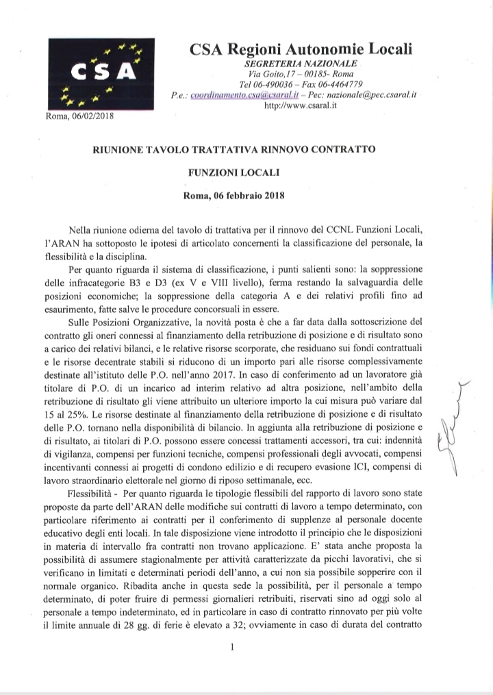 Navigazione articoli CSA, “messa in sicurezza delle pensiline” del 26.01.2018 CSA, comunicato stampa: ASU Sicilia convenzione Regione INPS per i pagamenti.