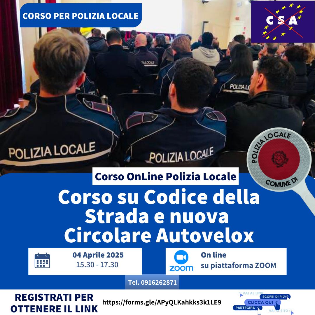 Venerdì 4 aprile 2025 dalle ore 15:30 alle ore 17:30 “Corso su Codice della Strada e nuova Circolare Autovelox”