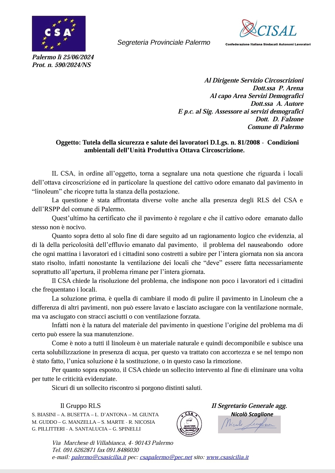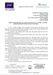 Navigazione articoli CSA Gruppo RLS: Tutela della sicurezza e salute dei lavoratori D.Lgs. n. 81/2008 – Condizioni microclimatiche dell’Unità Produttiva Polo Tecnico. CSA, Problematiche politiche del personale Comune di Palermo