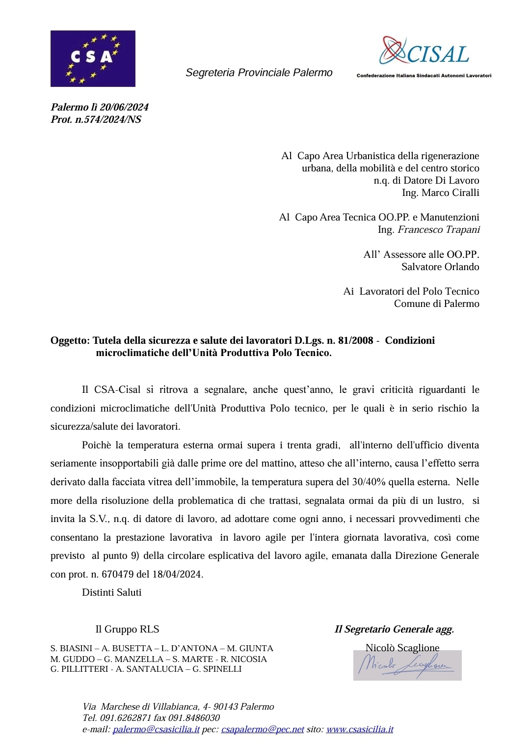 Navigazione articoli CSA Gruppo RLS: Tutela della sicurezza e salute dei lavoratori D.Lgs. n. 81/2008 – Condizioni microclimatiche dell’Unità Produttiva Sesta Circoscrizione. CSA Gruppo RLS: Tutela della sicurezza e salute dei lavoratori D.Lgs. n. 81/2008 – Condizioni ambientali dell’Unità Produttiva Ottava Circoscrizione
