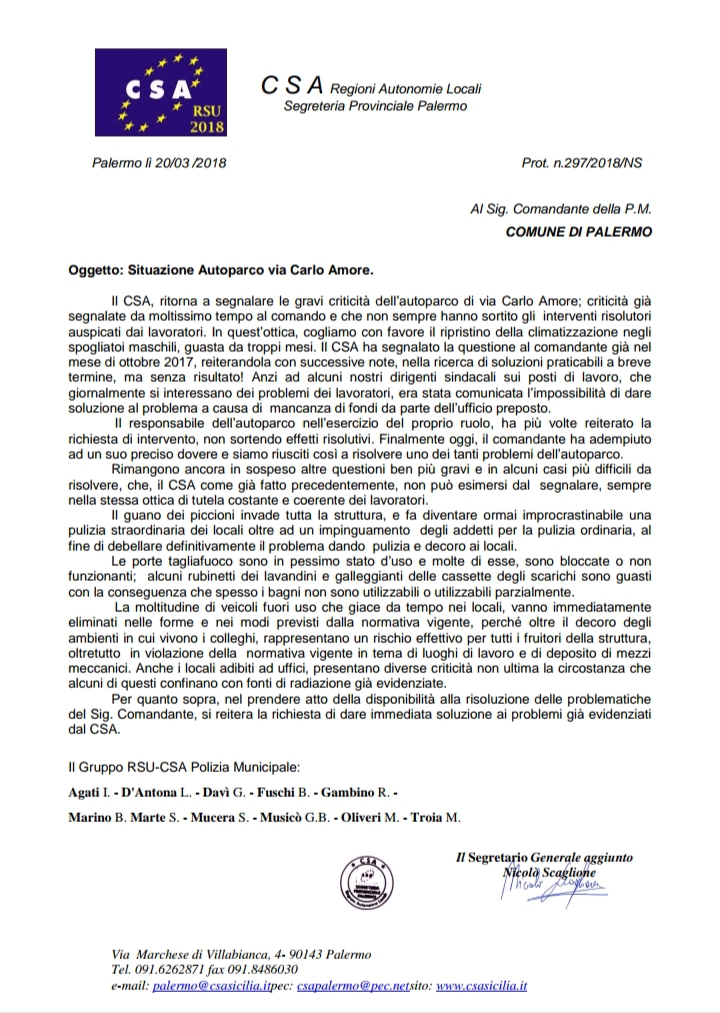 Cisal Comunicati Contratti CSA Polizia Locale Palermo Sindacato Uncategorized