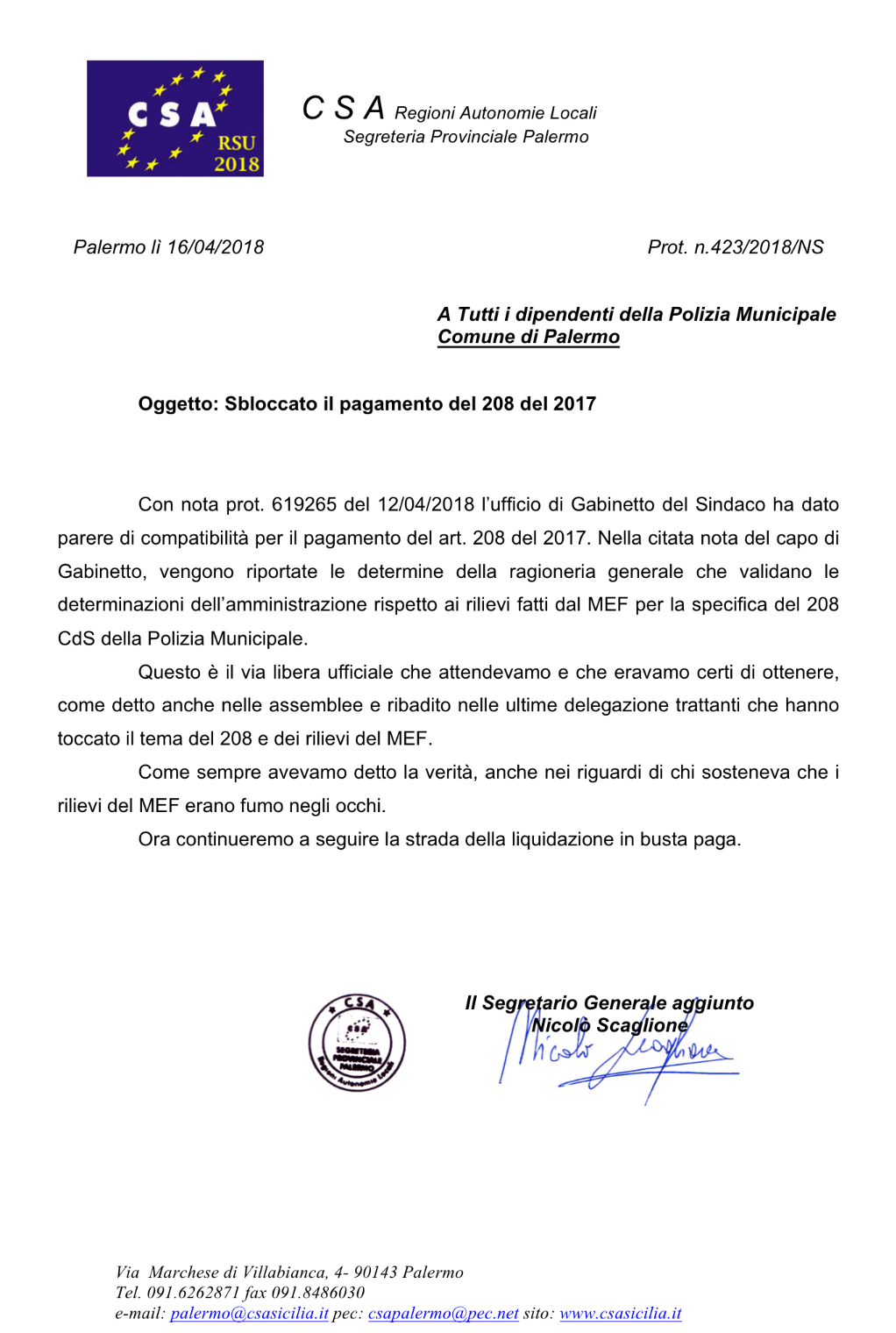 Navigazione articoli CSA, comunicazione a tutti i dipendenti della Polizia Municipale di Palermo. Comunicato Ospol: Bruxelles, plico diplomatico al governo italiano. CSA, nota su orario di servizio del personale in servizio presso la Procura della Repubblica del Tribunale di Palermo.