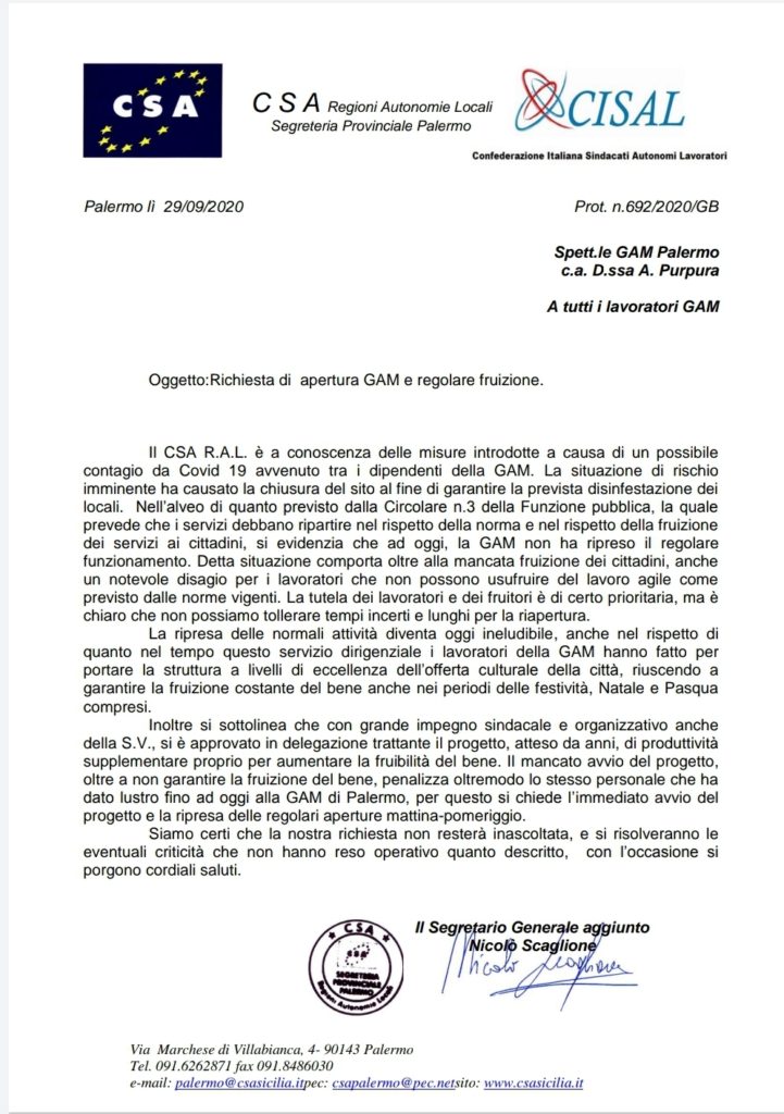 Navigazione articoli FP CGIL – CSA RAL – UIL FPL, Richiesta integrazione modifica CCDI parte Giuridica. Comune di Palermo CSA CISAL, Proclamazione stato di agitazione lavoratori ASU Istituzioni e EE.LL. Regione Sicilia