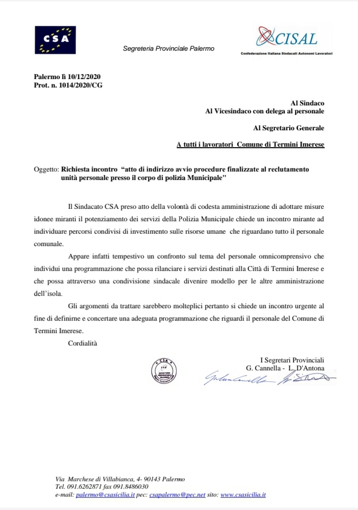 Comune di Termini Imerese Navigazione articoli FPCGIL – CSARAL – UILFPL, Volantino su aumento ore CSA, ASSEMBLEA GENERALE giovedì 17 Dicembre 2020