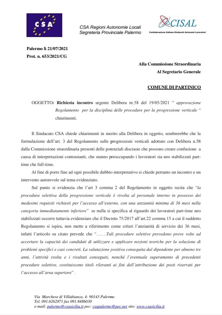Comune di Partinico Navigazione articoli Contratto dei dirigenti regionali bocciato, Siad-Csa-Cisal: “Si riordini tutta la pubblica amministrazione” CSA RAL – UIL FPL, Vertenza Postazioni Decentrate e Circoscrizioni.