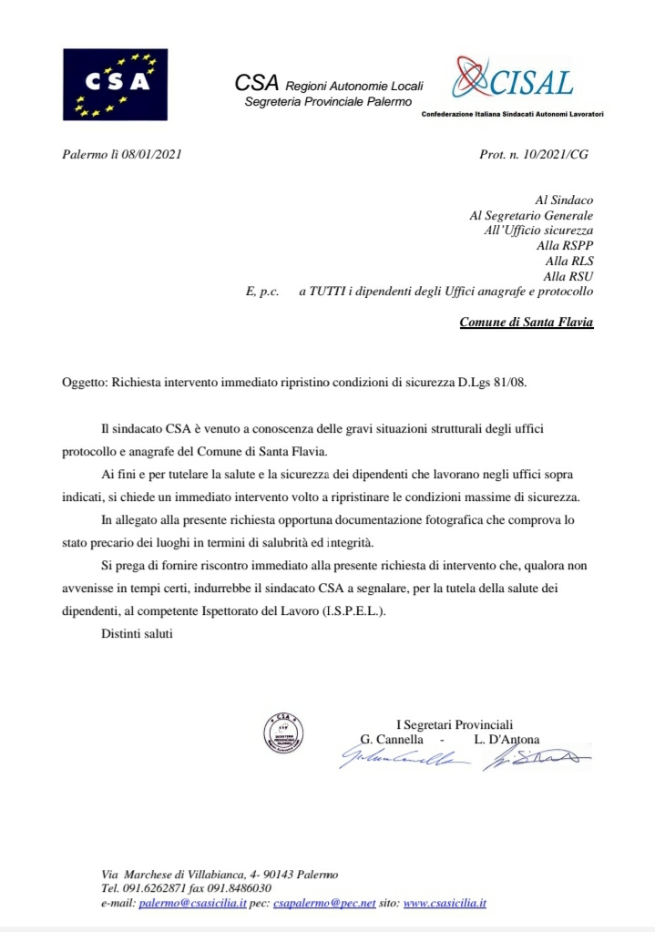 Comune di Santa Flavia Navigazione articoli CSA, Determina n.281 del 30.12.2020- Graduatoria P.O. Covid in Sicilia, Csa-Cisal: “Più attenzione per asili e scuole d’infanzia, corsia preferenziale per i vaccini”