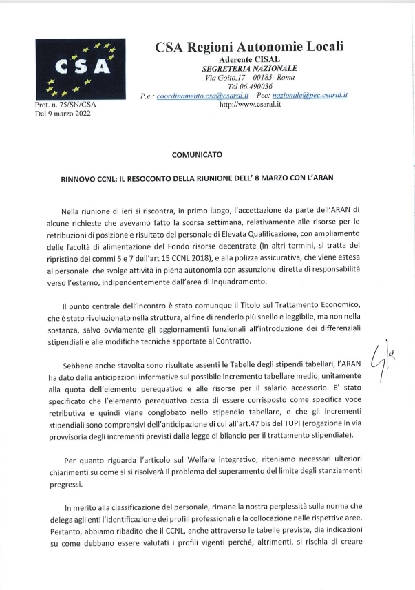 Navigazione articoli CSA Cisal: Polizza Tutela Colpa Grave Rinnovo contratto Regionali, incontro in Aran; Siad-Csa-Cisal: “Soldi non bastano, avanti col ricorso sui concorsi”