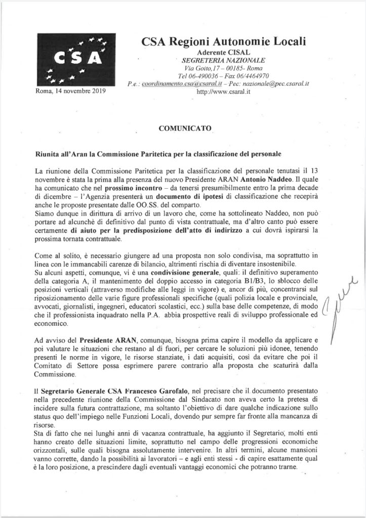 Navigazione articoli CSA, Problematiche ASU – chiarimenti tempistica pagamenti sussidi ANF e operatività piattaforma CSA-CGIL-UIL, mercoledì 20 novembre 2019 ASSEMBLEA personale P.M. di Palermo.