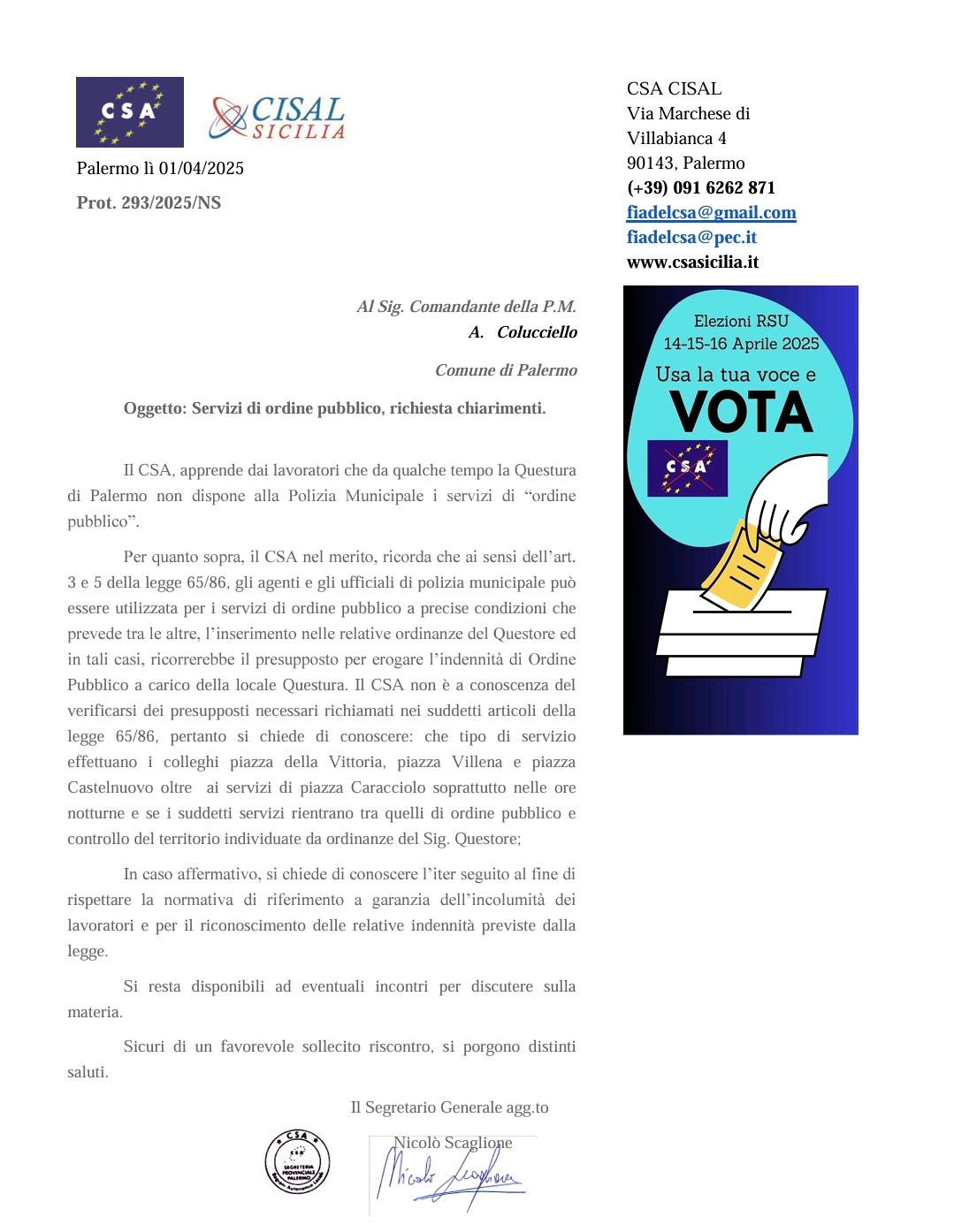CSA R.A.L. CISAL Palermo Sicilia