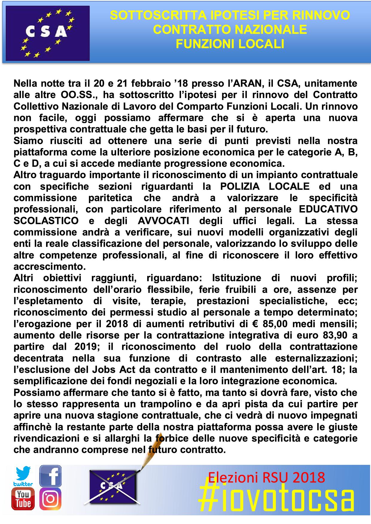 Navigazione articoli CSA, Istanza di accesso agli atti amministrativi ai sensi degli art. 22-24-25 L. 241/90. Tabella Rinnovo Contratto Nazionale Comparto Funzioni Locali 2016-2018 Arretrati di Stipendio e Aumenti Tabellari al 31/03/2018