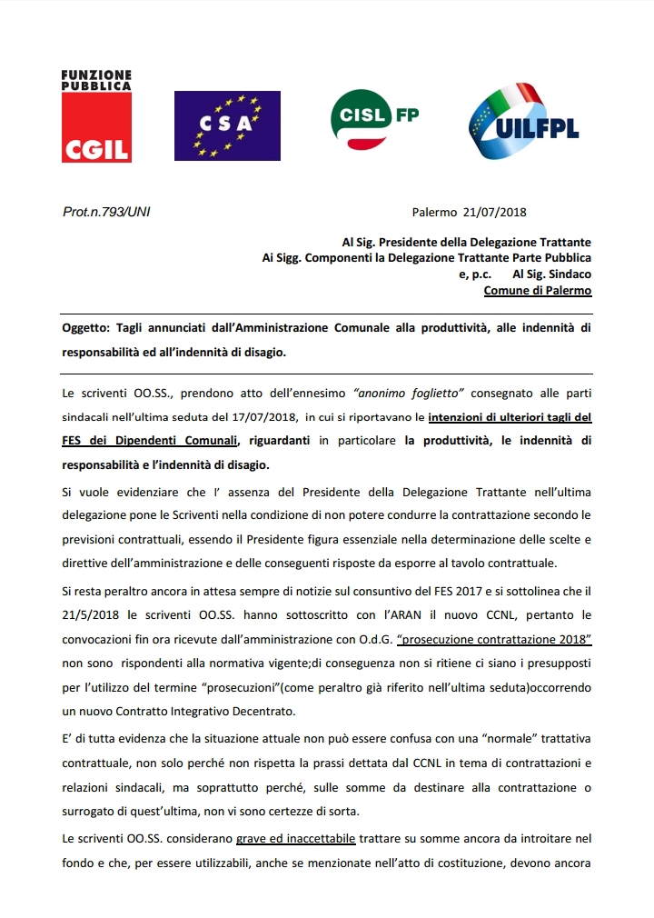 Navigazione articoli CSA, Dipendenti part-time riproporzionamento tre giorni di permesso ex Legge 104/92. CSARAL-FPCGIL-CISLFP-UILFPL: Convocazioni sui temi contrattuali in sede diversa dalla delegazione trattante.