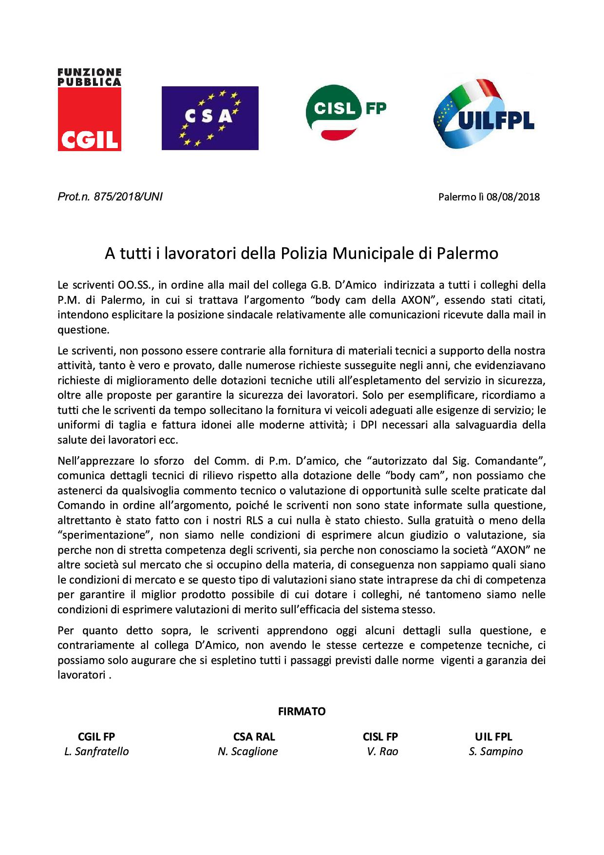 Navigazione articoli CSARAL-FPCGIL-CISLFP-UILFPL, Comunicato Stampa Il commento dei Sindacati a www.palermotoday.it su Giunta approva il Piano triennale 2018-2020 per il miglioramento dell’efficienza dei servizi della Polizia Municipale