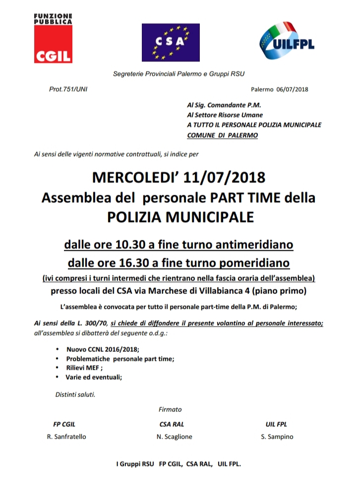 Navigazione articoli CSA, COMUNICATO DEL SEGRETARIO GENERALE FRANCESCO GAROFALO – RISULTATI RSU FP CGIL- CSA RAL- CISL FP – UIL FPL: STATO DI AGITAZIONE DIPENDENTI Comune di Palermo.