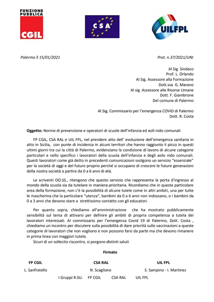 Comune di Palermo Navigazione articoli Accordo Regione-Stato sul disavanzo, Siad-Csa-Cisal: “No ai tagli per il personale regionale” CSARAL-FPCGIL-UILFPL, Potenziamento orario personale – Quota Servizio Fondo Povertà richiesta incontro