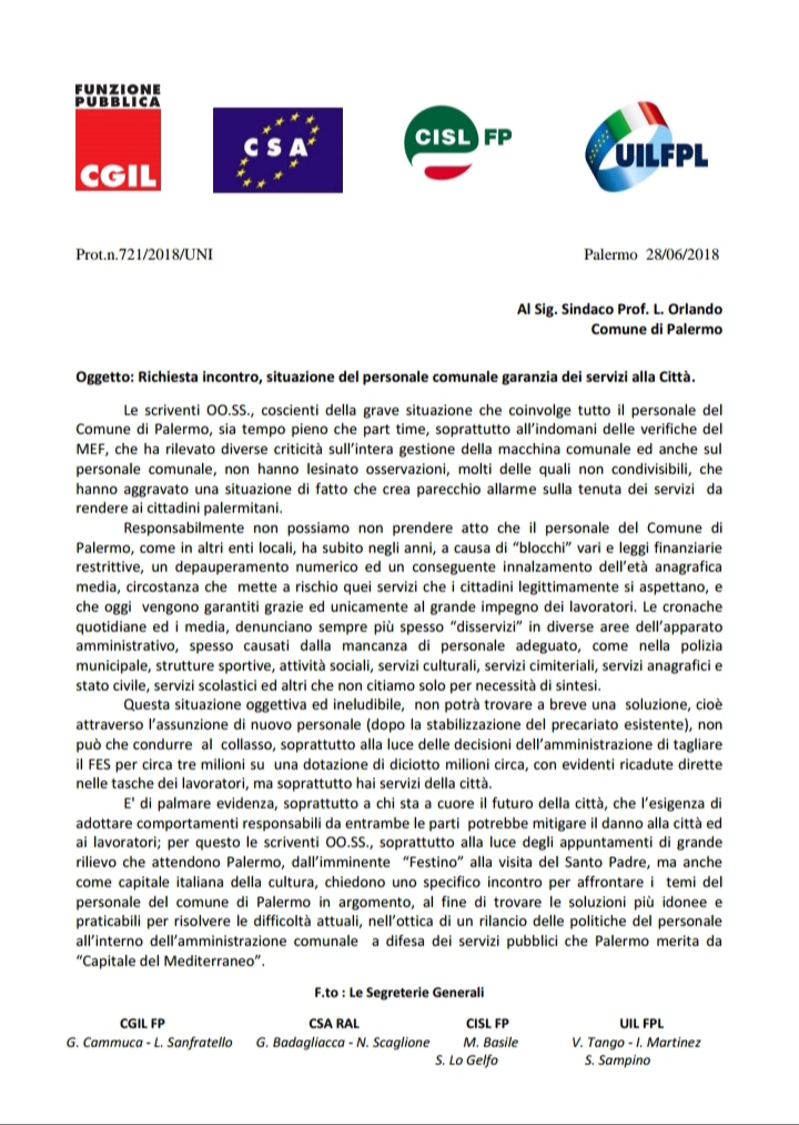 Navigazione articoli ++CORRETTO++ CSA, Comportamento discriminatorio, formale diffida. CSA – UILFPL, Diritti sindacali negati P.M. Palermo