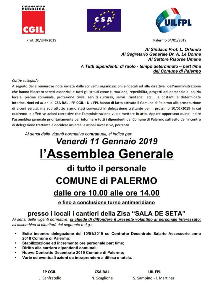Navigazione articoli CSA-UIL, in difesa dei lavoratori dell’ufficio anagrafe del Comune di Palermo 22/01/2019 AUDIZIONE A BRUXELLES NOSTRA PETIZIONE SU POLIZIA LOCALE