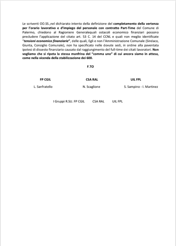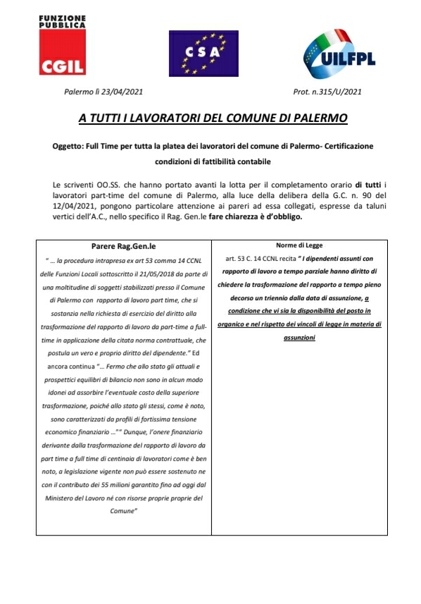 Comune di Palermo Navigazione articoli CSA RAL, richiesta incontro urgente stabilizzazione precari Ente. CSA, richiesta incontro percorso stabilizzazione lavoratori ASU.