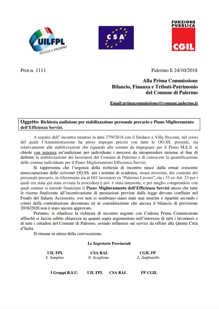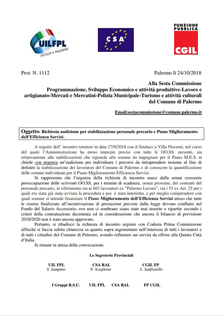 Navigazione articoli FP CGIL- CSA RAL- UIL FPL, Volantino delegazione del 23-10-18 Comune di Palermo Presidio precari Comune di Palermo