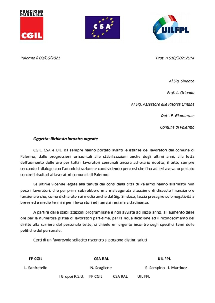 Comune di Palermo Navigazione articoli Segr. Naz. CSA FIADEL, MESSAGGIO DI SALUTO DEL SEGRETARIO GENERALE PER IL 2 GIUGNO – FESTA DELLA REPUBBLICA RSU Gruppo CSA Polizia Municipale, Richiesta installazione orologi marcatempo nella sede di via Ugo La Malfa n.72