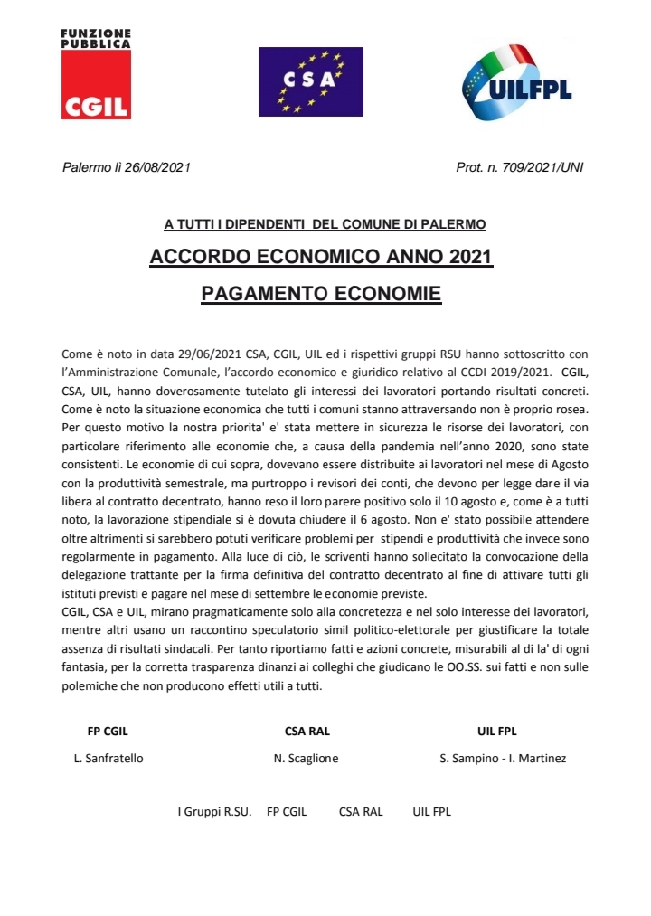 Comune di Palermo Navigazione articoli E’ scomparso Filippo Cannella, ex assessore del Comune di Palermo. Csa-Cisal: “Vicini alla famiglia” Delibera di governo oscurata, Siad-Csa-Cisal: “Alla Regione che fine ha fatto la trasparenza?”