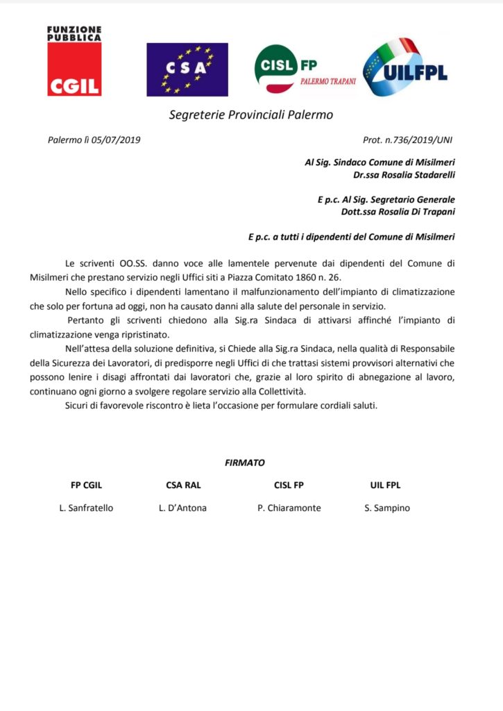 Navigazione articoli FPCGIL-CSARAL-UILFPL, Richiesta avvio tavolo delegazione trattante rinnovo CCDI 2019/21 FPCGIL-CSARAL-UILFPL, Assemblea di tutti i lavoratori di categoria D del Comune di Palermo g. 16.07.2019