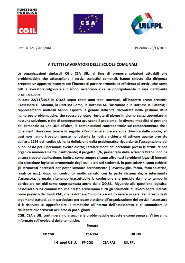 Navigazione articoli Compensazione legale – DIFFIDA FPCGIL-CSARAL-UILFPL, Richiesta locali Assessore Arcuri per Assemblea Sindacale dei Lavoratori a Tempo Determinato.
