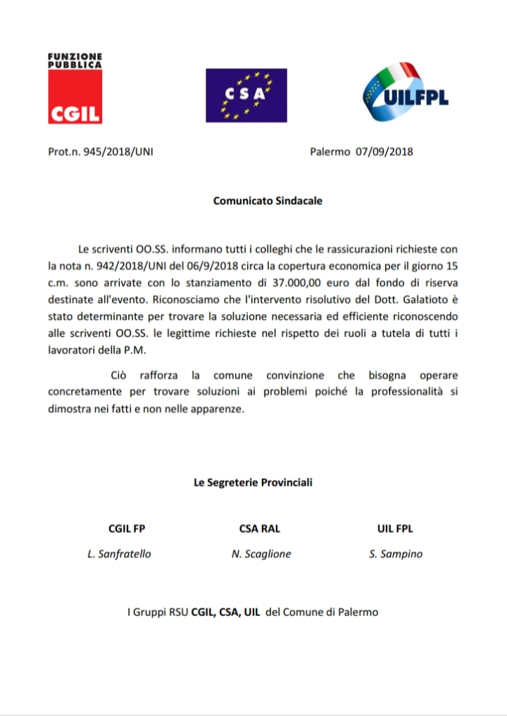 Navigazione articoli FpCgil-CsaRal-UilFpl, Comunicato stampa in riferimento al comunicato del Dott. Marchese datato 6/9/18 CSA, Nota su Circolare Ministero dell’Interno.