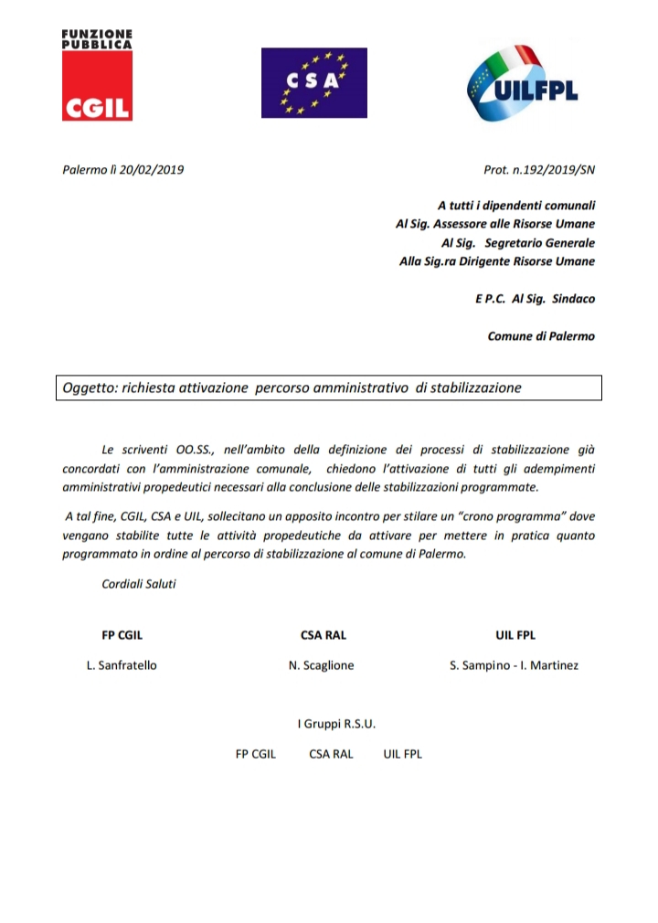 #sindacatodelfare #sindacatoresponsabile Navigazione articoli CGIL-CSA-UIL, assemblee dei lavoratori del comune di Palermo. Ratifica del contratto decentrato 2018. CSA, Corso sulla disostruzione delle vie aeree nei bambini e altri rischi maggiori dell’età pediatrica.